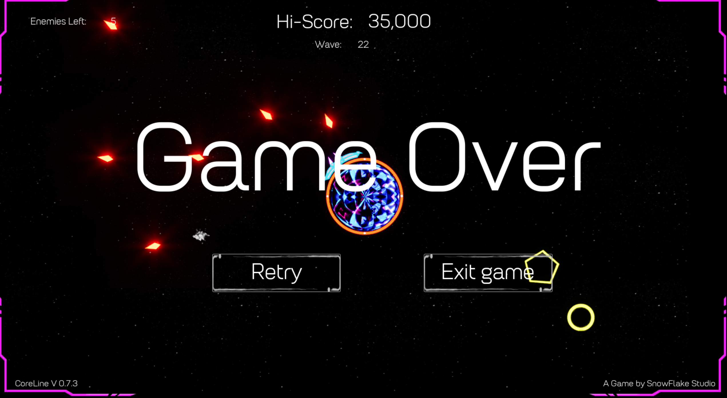 CoreLine is inspired by old arcade games, where it's simple to learn, hard to master and achieve high scores.