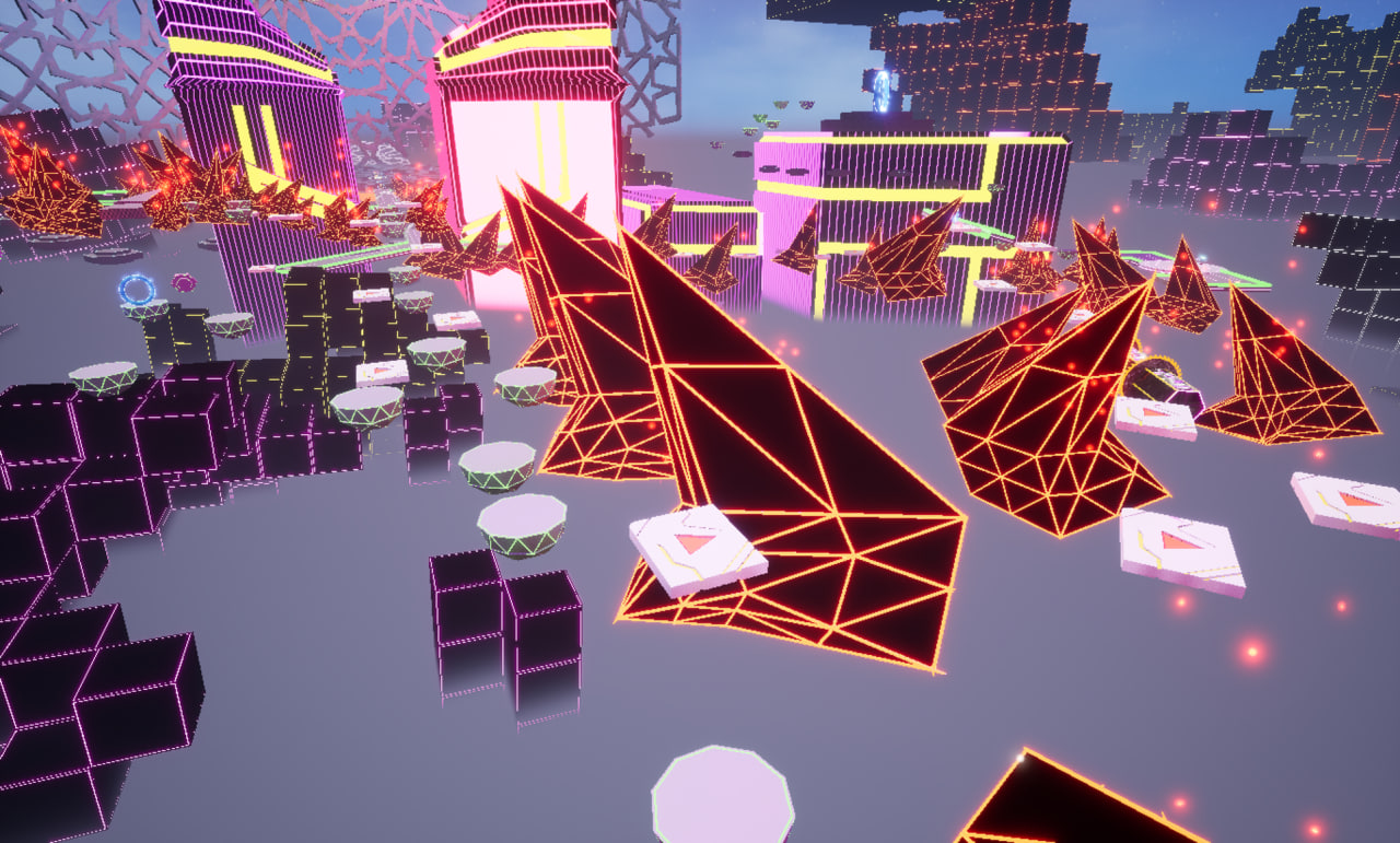 SYNTHROME level design is inspired by Sonic adventure, where the levels feel more like a playground, and the more you master the mechanics & memorize the level, the more you can find new ways, faster times to beat the level, or search for secrets & rewards.